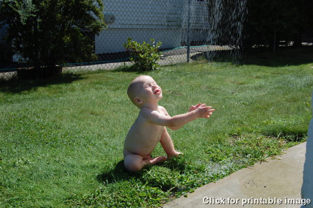 More than anything, Devin loves taking a shower in the back yard. He ran over for his turn when he saw the other boys cleaning up after getting back from the beach.