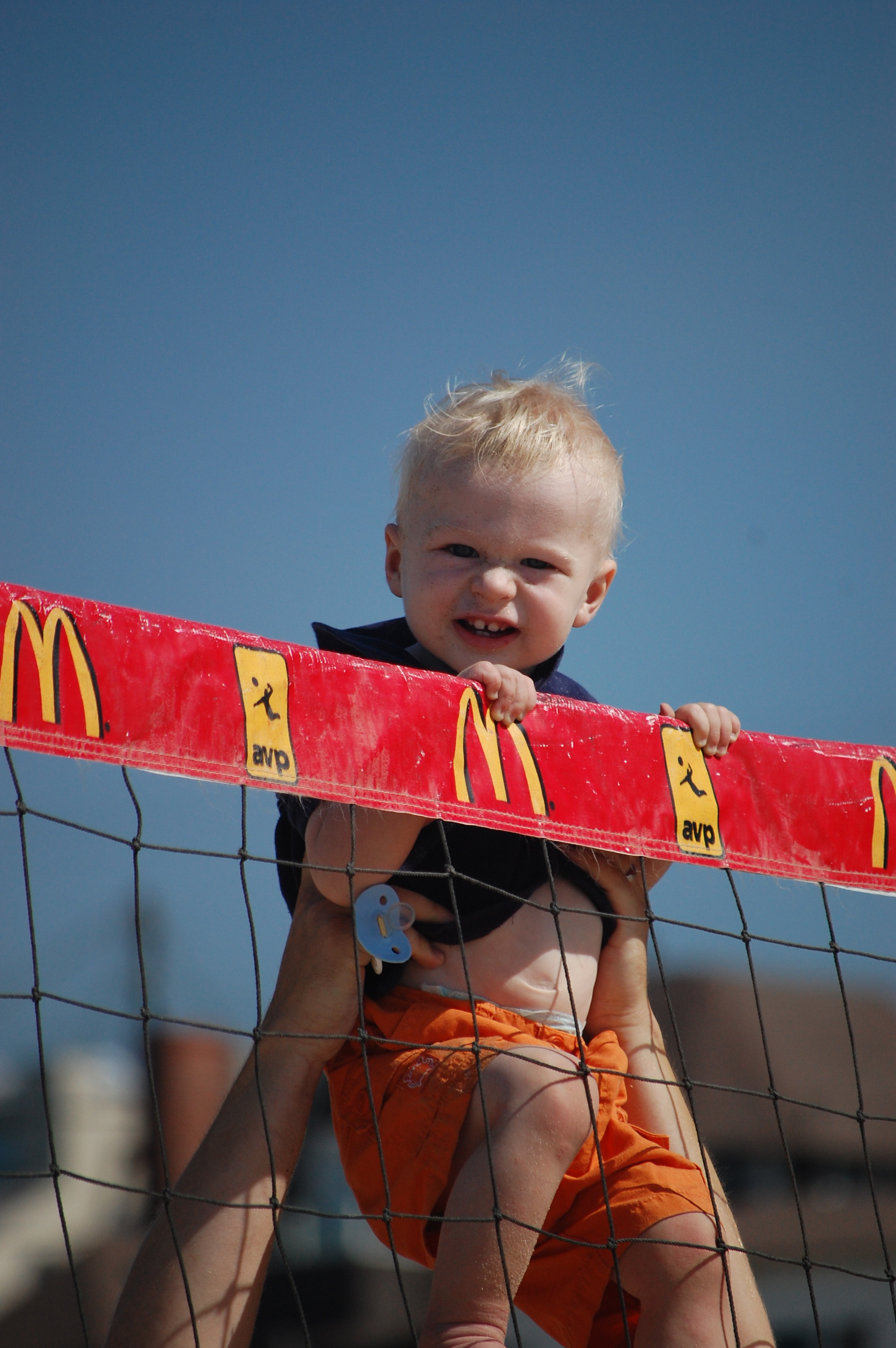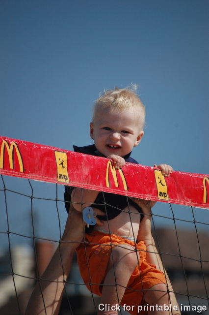 Devin puts up a big block at the Manhattan Beach AVP.