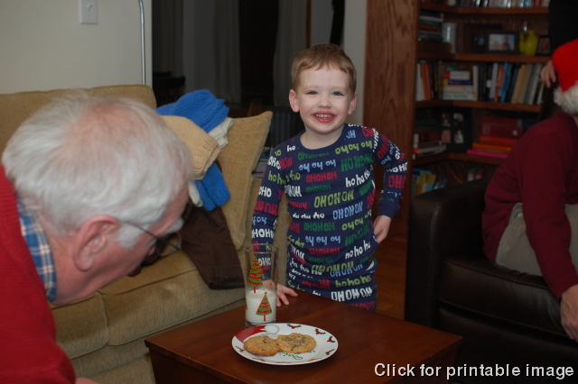 We leave cookies and milk for Santa, a carrot for Rudolph (Quinn took it)