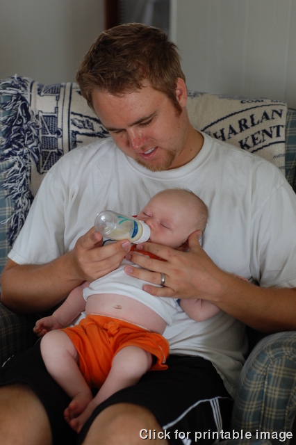 Dad gets some good feeding time in