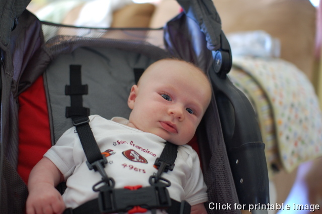 Devin gets a new stroller, and the Niners finish off the Rams. What a good day!