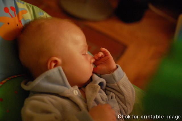 Devin is getting better and better at finding his thumb.