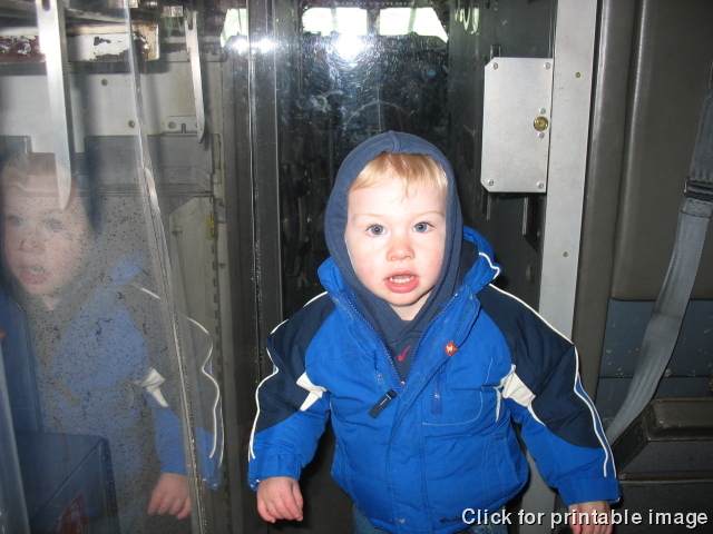 Devin visits the cockpit of a Concorde.