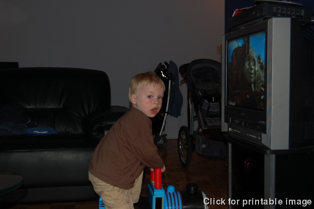 Sitting on Thomas, watching Thomas.
