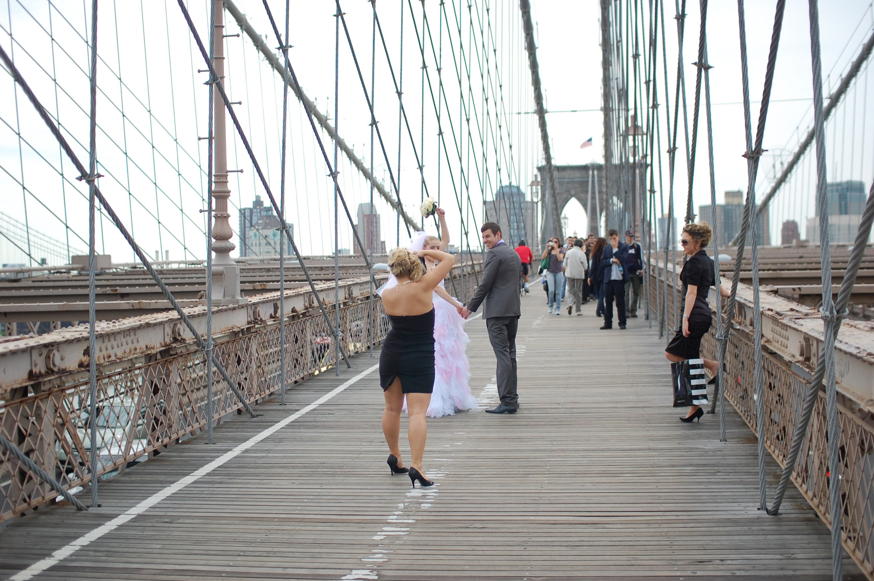 Wedding shoot on the Brooklyn Bridge.